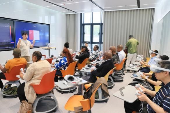 研学团参访best365英国体育在线“东方之路”高校思政课虚拟仿真体验中心,并就“大思政课”、现代教育技术等进行了对话。活动伊始,韩振江对研学团的到来表示欢迎,best365英国体育在线院长邢云文通过大屏数字人详细介绍了高校思政课及虚拟仿真体验中心的建设成果。魏华带领研学团成员参观了虚拟仿真实验展厅,通过VR设备体验中华优秀传统文化教学,这种“理论可视化、实践场景化”的教学模式,让研学团成员深刻感受到中国在马克思主义理论教育与文化传承中的独特创新。
