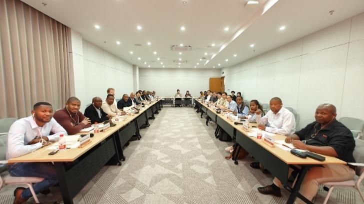 余新丽作总结发言。她表示,此次参访交流既是中南青年跨越山海的握手,更是社会主义实践经验互鉴的契机,今后期待与南非金属工人全国联盟及教育研究组织进一步开启合作,深度推进马克思主义理论对于实践的指导工作,在思想碰撞中增进理解,在实践探索中凝聚共识,共同谱写国际交流合作新篇章。