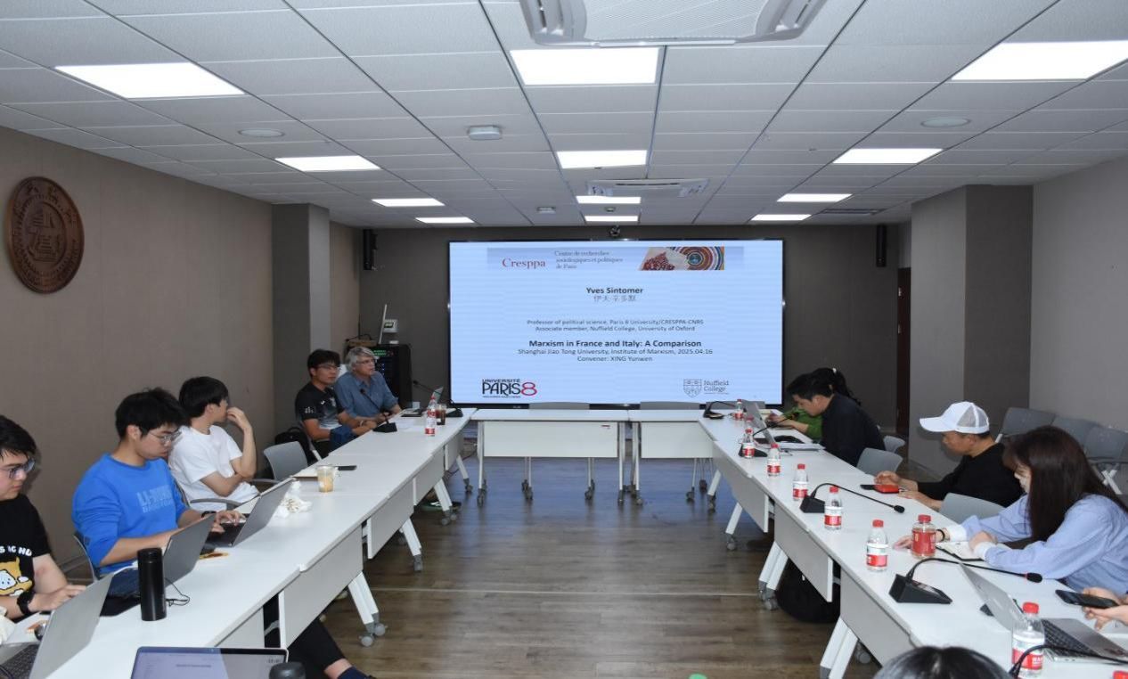 2025年4月15日至16日,best365英国体育在线“国际学术交流月”系列活动持续推进,暨“国际马克思主义理论前沿讲座”第三期活动成功举办。法国巴黎第八大学政治学教授、法国大学研究院荣誉高级研究员伊夫·辛多默(Yves Sintomer)应邀开展两场专题学术讲座。作为研究政治社会学理论的国际权威学者,辛多默教授以“特朗普时代下的欧洲政治体系危机”和“法国与意大利马克思主义的比较分析”为主题,结合国际政治热点,为交大师生带来了两场跨文化思想对话。best365英国体育在线院长邢云文教授、党委宣传部副部长周凯教授、副院长鲍金教授等学院专家学者担任与谈人,就中西社会理论展开了深入探讨。