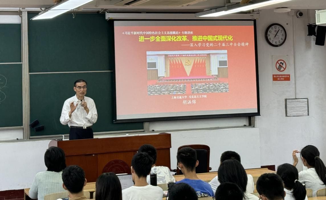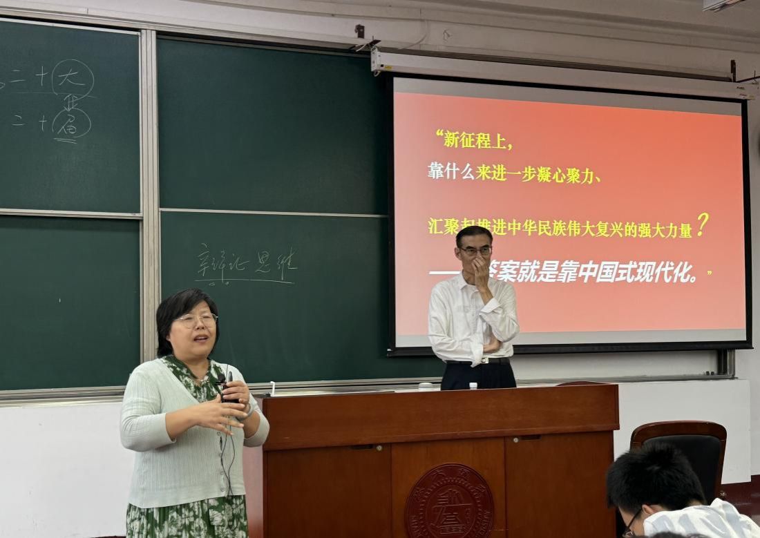 为学习贯彻党的二十届三中全会精神,阐释好《中共中央关于进一步全面深化改革 推进中国式现代化的决定》,让青年学生进一步了解中国改革事业的光荣历史,自觉围绕推进中国式现代化这个主题贡献青年力量,9月26日下午,best365英国体育在线原副院长、学院关工委副主任、优秀思政教学名师胡涵锦教授走进“习近平新时代中国特色社会主义思想概论”课堂,best365英国体育在线张玲教授主持,近100名学生参加此项教学活动。